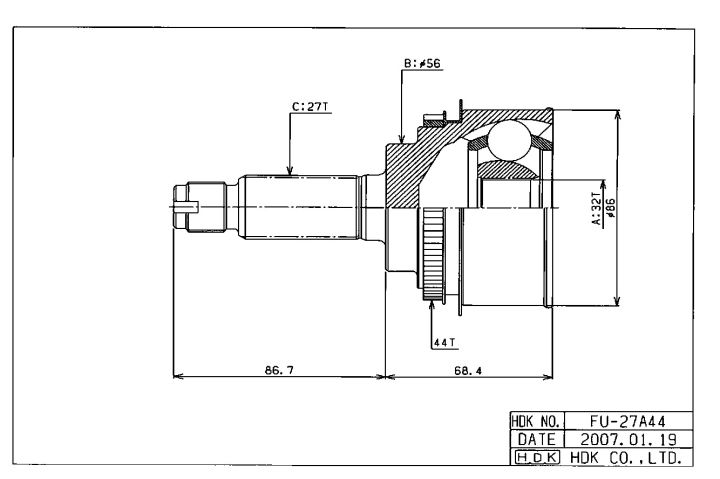 ШРУС наружный /передний правый /левый HDK для Impreza GDB 2000- 4WD; 32*56*27; FU-027A44; 28321FE001 28321FE011 28321FE020