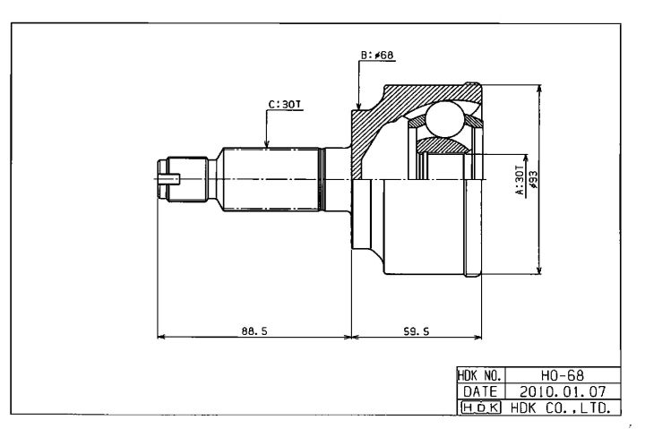 ШРУС наружный /правый /левый HDK для Honda Accord 2008- CU2 KA24A; 30*68*30; HO-068; (TG-4468) 44306TL3000 44305TL3000 44305T0AA00