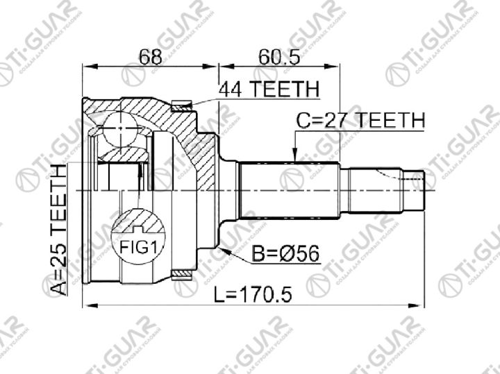 ШРУС наружный /задний /TI-GUAR для Nissan Primera Wagon 1999-2000 P11E SR20DE Bluebird 1996-1997 HU14; 25*56*27; TG-7465Z44; (39211-WA010 NI065A44 0210065A44) S391002J210 JCT0036A